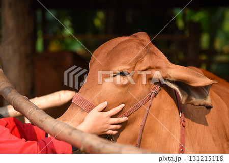 Happy Muslim Woman petting a Sheep at Farm animal interaction experience