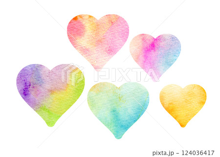 カラフルなハートマーク 水彩テクスチャ