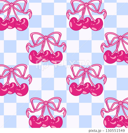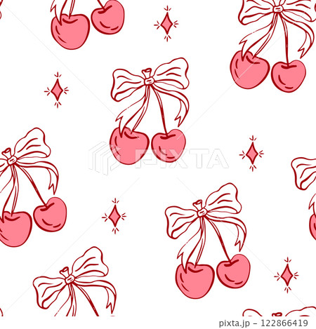 Cherry with bow in cartoon style. Ballet-core, coquette-core print