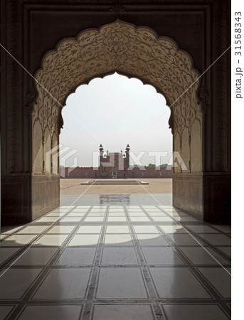 パキスタン ラホール バードシャーヒーモスクの室内 美しい回廊