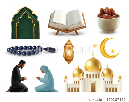 Concept of Muslim holy month Ramadan Kareem, isolated on white background