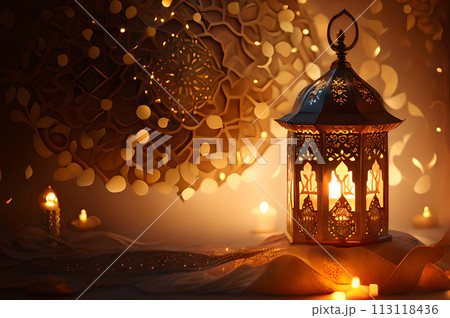 Muslim Holy Month Ramadan Kareem - Ornamental Arabic Lantern With Burning Candle