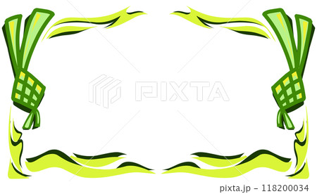 The illustration background with a Ramadan and Eid themed design, has a steamed diamond shaped rice or ketupat and has green and yellow elements