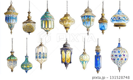 Elegant Watercolor Hanging Lanterns Blue Yellow Design Ramadan Decor art gold home hand lamps light