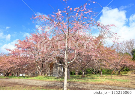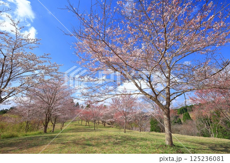【大分県】晴天の長湯温泉 しだれ桜の里