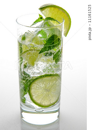 Refreshing mojito made with muddled mint leaves, fresh lime juice, sugar, white rum, soda water. AI generated