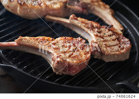 グリルパンでラムチョップを焼く
