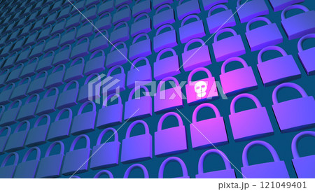ランサムウェア ウイルスに感染した画面を表示するノートパソコン ラップトップ
