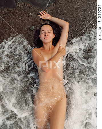 Young woman in bikini at ocean coastline. Caucasian model at vacations