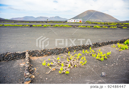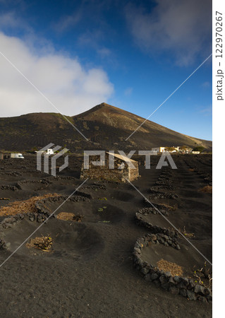 landscape with volcanic vineyards. Lanzarote. Canary Islands. Spain