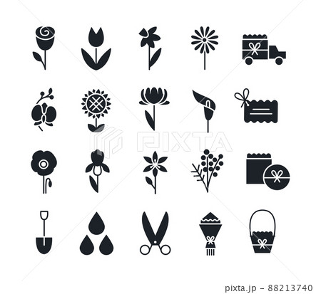 Silhouettes of flowers icon set. Gardening and flowers delivery icons