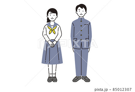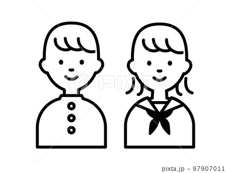 正面を向いて立つ男子学生と女子学生のシンプルイラスト 2タイプセット