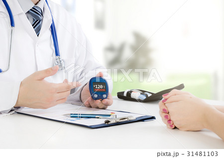 Asian woman checking blood sugar level by Digital Glucose meter, Healthcare and Medical, diabetes, glycemia concept