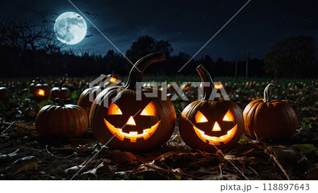 Scary Halloween glowing pumpkins