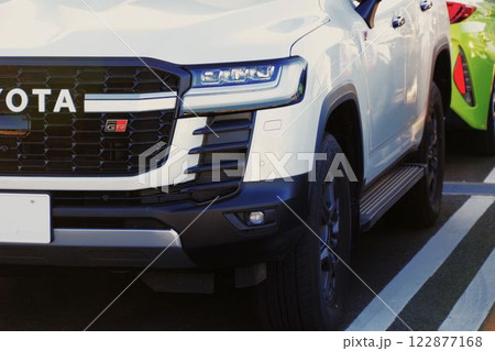 駐車場に並ぶ乗用車(トヨタ・ランドクルーザー300系)