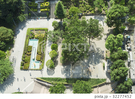 休日の公園イメージ 俯瞰撮影 空撮
