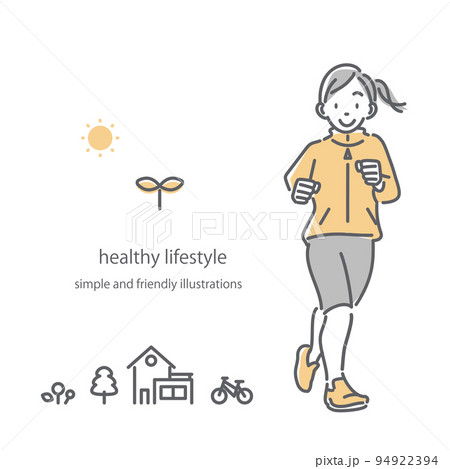 ランニングをする女性 健康 ライフスタイル シンプルでお洒落な線画イラスト