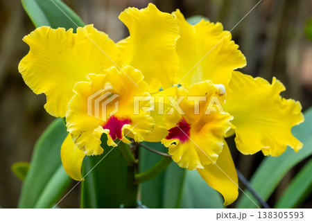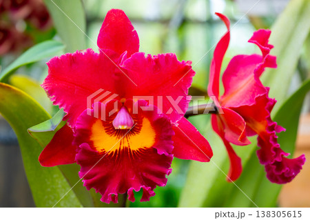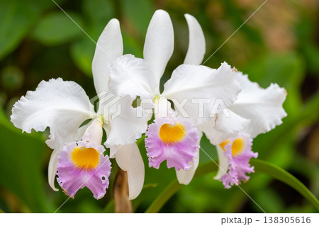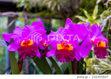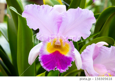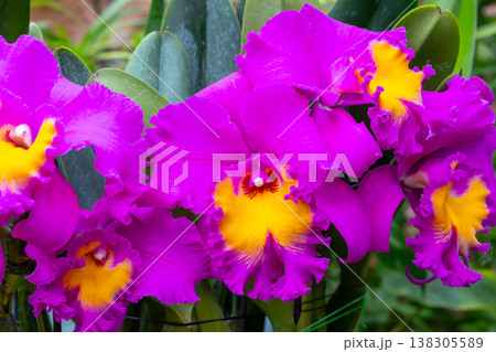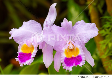 ラン科植物の洋ランの女王カトレア(カトレヤ)の花クローズアップ