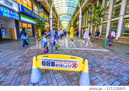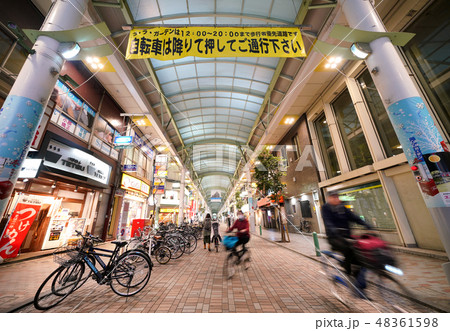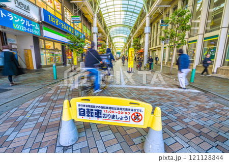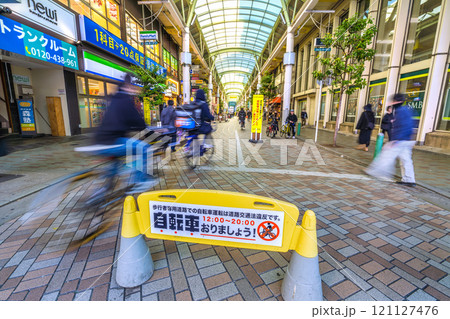 日本の東京都市景観 赤羽駅周辺 LaLaガーデン 「自転車は降りて押してご通行ください」