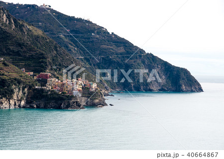 チンクエ・テッレ(イタリア・リグーリア州) 曇りの日のマナローラ