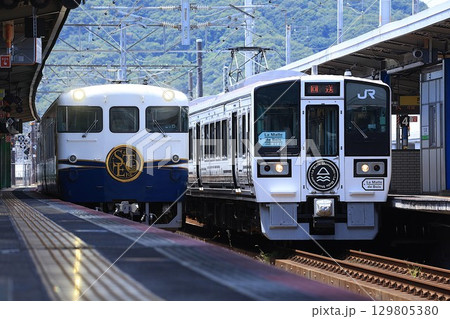 【JR西日本】キロ47形「etSETOra」と213系「ラ・マル しまなみ」(山陽線・呉線:三原駅)