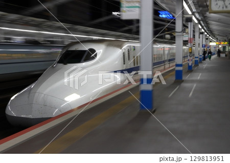 夜の福山駅に到着する山陽新幹線のぞみ号(N700A/ラージA)