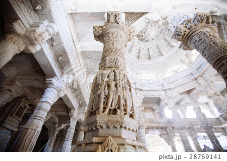 Columns of beautiful Ranakpur Jain temple in Ranakpur, Rajasthan. India