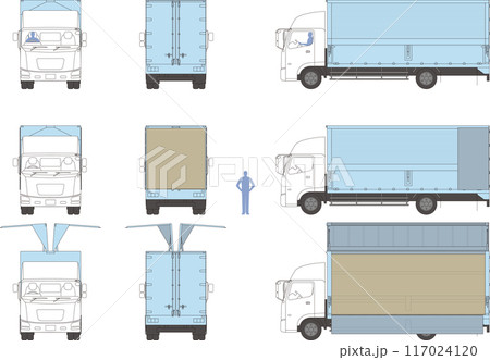 中小型ウイングトラックのイメージイラスト正面側面背面 ドライバー