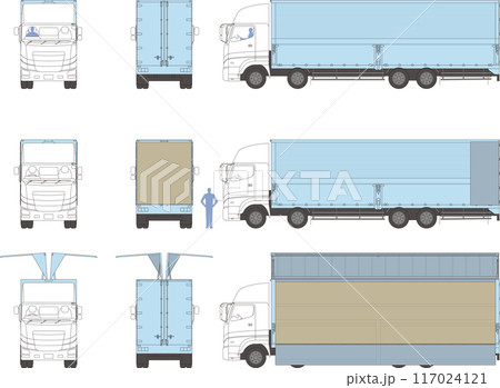 大型ウイングトラックのイメージイラスト正面側面背面 ドライバー