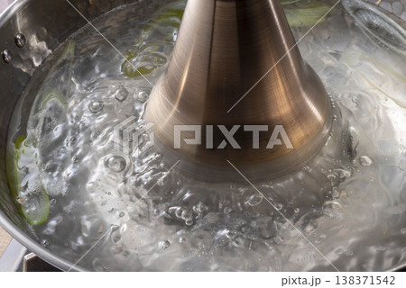 沸騰するしゃぶしゃぶ鍋の調理風景