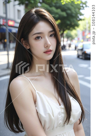 街角スナップ 黒髪ロングの素敵な女性(AI生成画像)