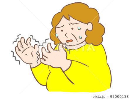 断酒による離脱症状で手の震えがあるアルコール依存症の女性のイラスト