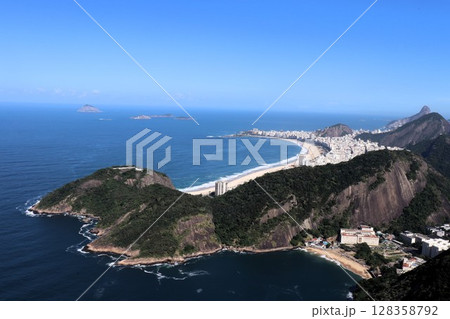 ブラジル リオ・デ・ジャネイロ コルコバードの丘からの眺め(グアナバラベイビーチとポンジアスーカル)