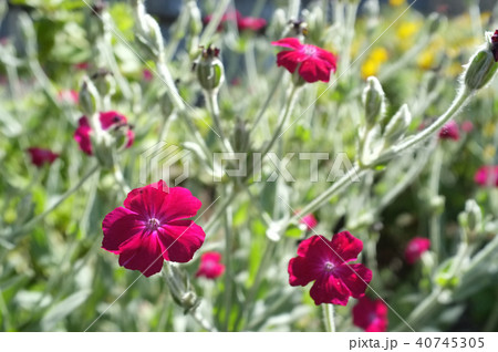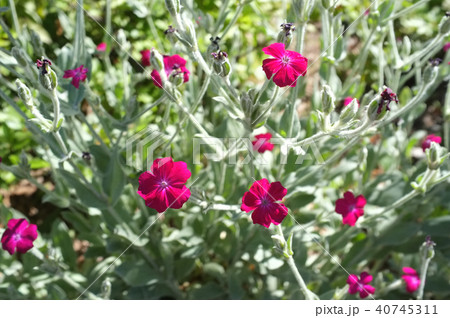 春の日本の公園に咲く濃いピンク色のスイセンノウの花