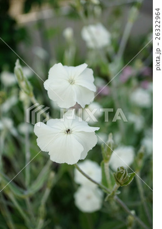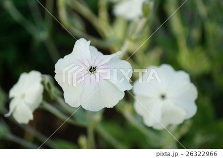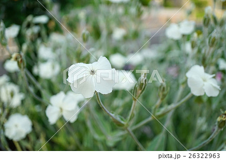 初夏の日本の公園に咲く白いスイセンノウの花