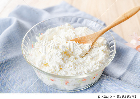 リコッタチーズ イタリアンチーズ 乳製品 リコッタ 白い器 白い背景 イタリア料理