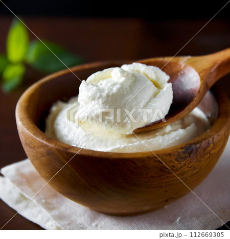 クリームチーズ チーズ 乳製品 リコッタ 木製スプーンですくう 手作り