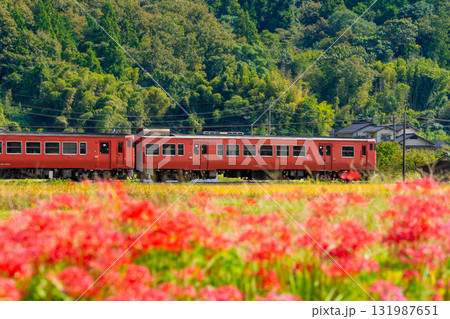 秋の花咲く津山線を走る津山駅行き観光列車・SAKU美SAKU楽3 岡山県岡山市北区