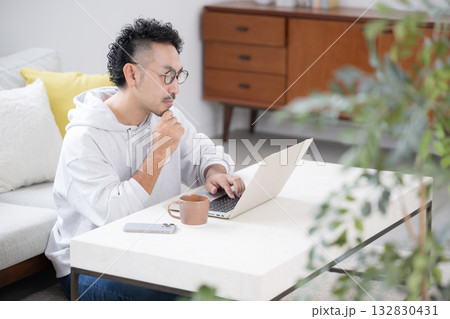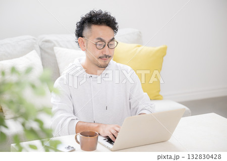 中年のリスキリングや自宅で資格やスキルを勉強する様子