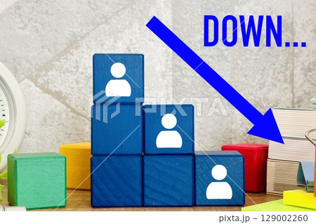 A store and a downward arrow. A decline in customers and demand, declining sales. The store is unprofitable. Businesses are shrinking. Market pressure reduces revenue. Strategy changes are required