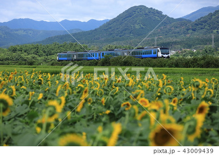 夏の五能線とヒマワリ畑(リゾートしらかみ ブナ編成)