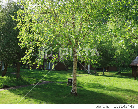 札幌市定山渓の涼やかな白樺の林
