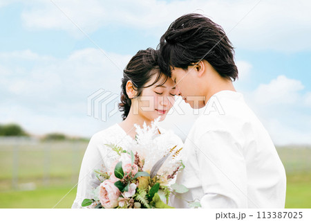 結婚・リゾートウェディング・ガーデンウェディングをするカップル・夫婦