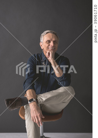 Outgoing retire male holding spectacles in hand
