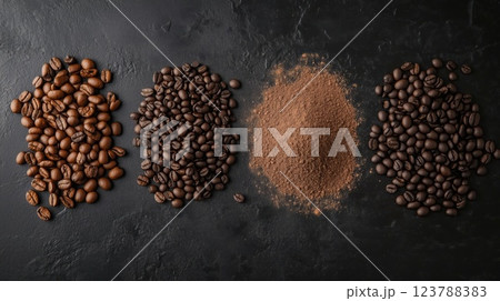 Coffee Beans Piled High on a Clean Surface Ready for Brewing Fresh Beverages in the Morning