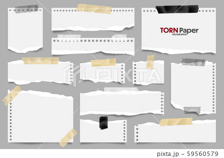 White ripped paper strips collection. Realistic paper scraps with torn edges and adhesive tape