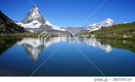マッターホルン matterhorn リッフェルゼー riffelsee シルエット 夏