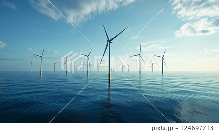 風力発電が並ぶ海岸の風景、電力と環境問題