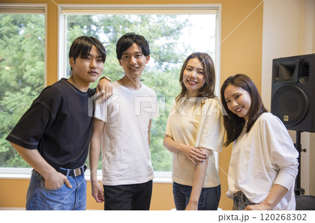 スタジオで練習をする若い男女