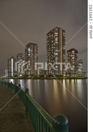 永代公園からみた佃島のタワーマンションの夜景(東京都中央区)